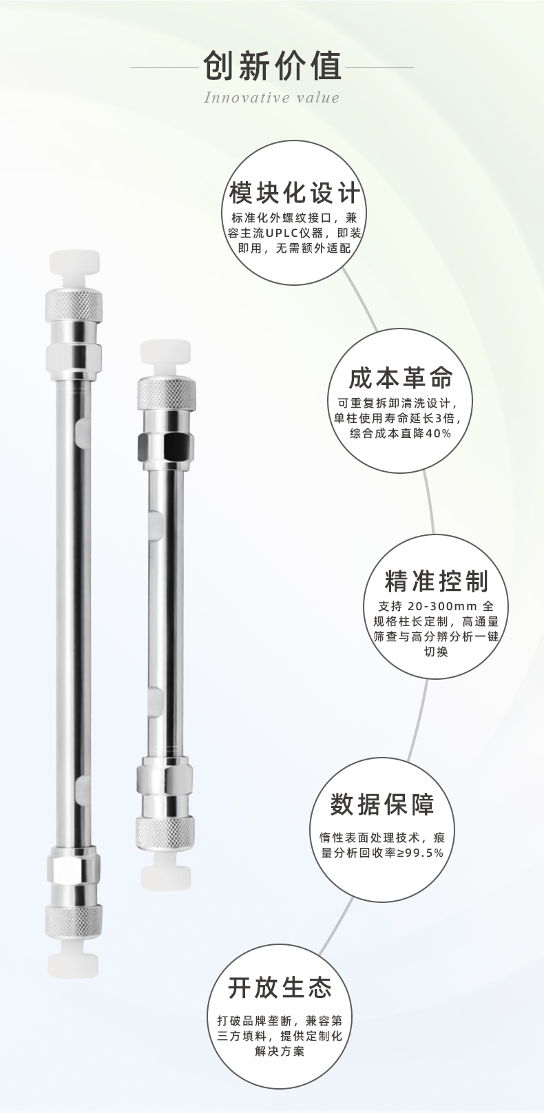恒譜生3.0UPLC超高壓色譜空柱管可與多種填料和檢測(cè)技術(shù)聯(lián)用,適用于生物醫(yī)藥、環(huán)境監(jiān)測(cè)、食品安全和化工行業(yè)等多種應(yīng)用。